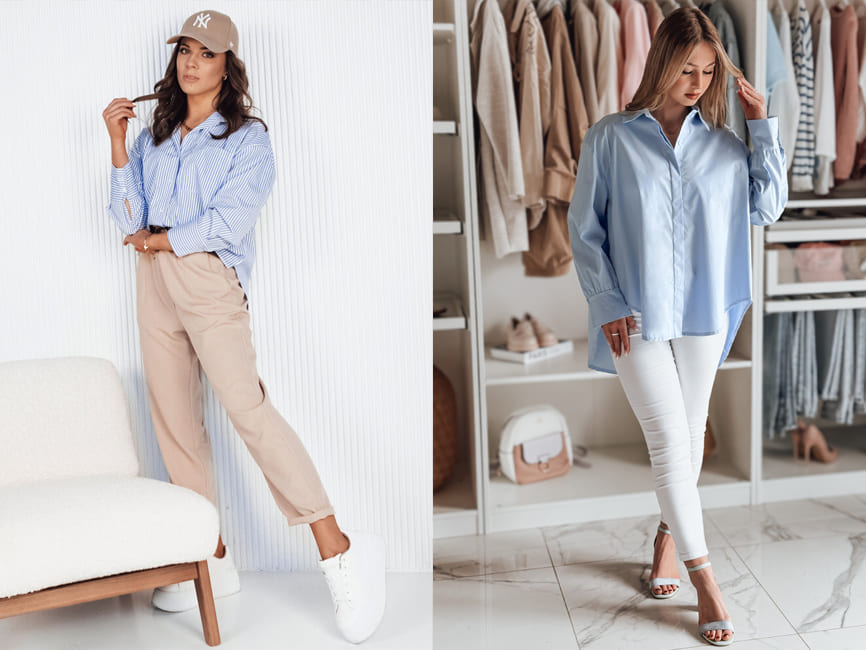 Jakie spodnie do niebieskiej koszuli wybrać by wyglądać kobieco i elegancko?