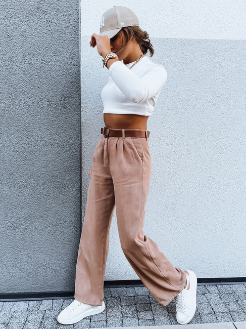Styl Wide Leg: Spodnie EMERALD prezentują się w modnym kroju wide leg, z szerokimi i prostymi nogawkami, które są hitem tego sezonu, zapewniając wygodę i swobodę ruchów.