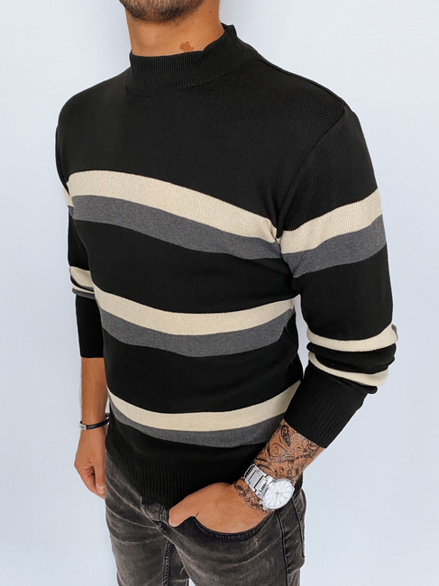 Sweter męski półgolf w paski czarny Dstreet WX2127