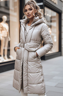 Kurtka damska VELVETTI długa pikowana z kapturem dwustronna beżowa Dstreet TY4653