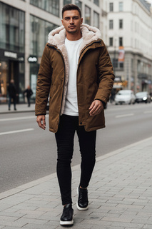 Kurtka zimowa męska parka z kapturem ciemnobeżowa Dstreet TX4970z
