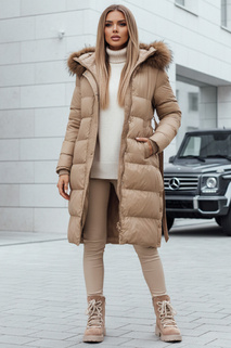 Kurtka zimowa damska pikowana z kapturem MENSI ciemnobeżowa Dstreet TY3970