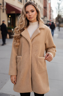 Płaszcz damski PLUSHLINE baranek długi beżowy Dstreet NY0711