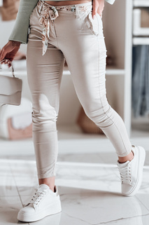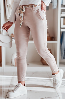 Spodnie damskie casualowe z paskiem MADELINA jasnobeżowe Dstreet UY2623