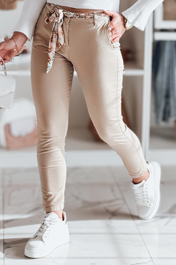Spodnie damskie chinosy z paskiem TAILANDI latte Dstreet UY2549