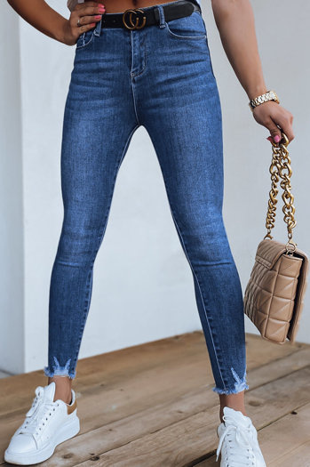 To damskie spodnie jeansowe obcisłe na całej długości nogawki, przez co perfekcyjnie przylegają do ciała. Posiadają one zwężaną nogawkę, która wydłuża optycznie nogi oraz wysmukla ciało. Ponadto, tego rodzaju spodnie sprawiają, że osoba je nosząca wydaje się wyższa. Przedrostek "skinny" oznacza bardziej dopasowane niż "slim". Krój ten często określany jest mianem drugiej skóry, gdy tak mocno opina ciało. Jeansy skinny od dawna królują w kobiecych garderobach. Wyróżniają się tym, że można je bez problemu dopasować do każdej figury i są niezwykle uniwersalne. Dzięki nim można stworzyć niepowtarzalne outfity na wiele różnych okazji. W naszym asortymencie znaleźć można najmodniejsze modele klasycznie, w odcieniach niebieskiego, ale także spodnie czarne czy białe.
