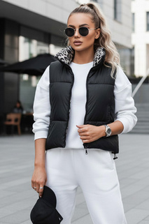 Kamizelka damska LEOVELLA przejściowa krótka pikowana dwustronna czarna Dstreet TY4649