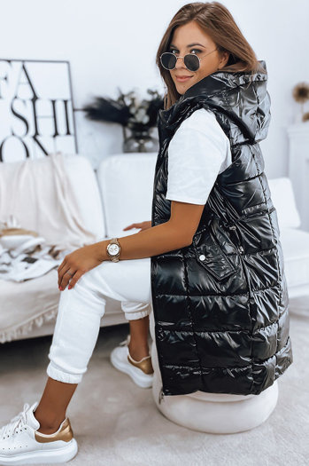 Kamizelka damska COSYVIVA długa z kapturem pikowana czarna Dstreet TY4603
