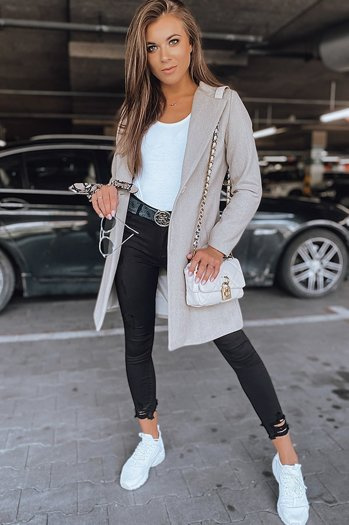 Płaszcz jesienny damski jednorzędowy SCHERMI jasnoszary Dstreet NY0668