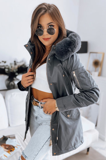Kurtka damska FURDENIM jeansowa z futerkiem ciemnoszara Dstreet TY5185
