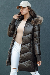 Kurtka zimowa damska ULTRAWAY pikowana z kapturem brązowa Dstreet TY4644