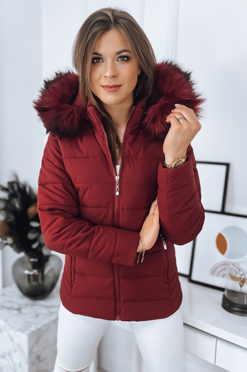 Kurtka damska zimowa VIRELIA pikowana z kapturem bordowa Dstreet TY4935