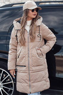 Kurtka zimowa damska NORFFI długa pikowana z kapturem beżowa Dstreet TY4662