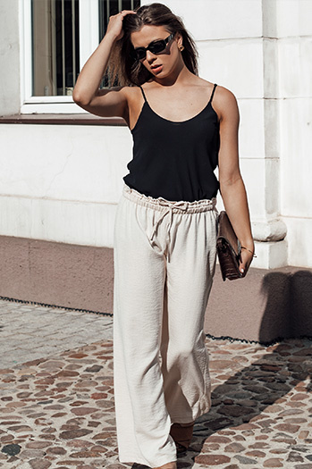 Spodnie damskie wide leg MADDIE jasnobeżowe Dstreet UY2131