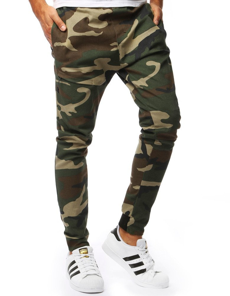 Tego typu joggery idealnie sprawdzają się w czasie uprawiania sportu. Siłownia, bieganie, czy też koszykówka to tylko niektóre ze sportów, przy których osoba, która ma na sobie joggery, może poruszać się komfortowo. Przewiewny i wytrzymały materiał spodni jest jednocześnie bardzo przyjemny w dotyku. Stylizacja tego typu doskonale prezentuje się na przykład z efektownym sportowym obuwiem. Spodnie dresowe tego typu wykonane są często ze wzorem moro. Komfortowy krój i wojskowa stylistyka to świetne połączenie dla mężczyzn, którzy chcą dobrze się czuć w trakcie uprawiania sportu. Joggery dresowe męskie dostępne są w rozmaitych kolorach i z różnymi wzorami. Jaskrawe, czerwone joggery przyciągają spojrzenia podczas porannego joggingu. Joggery dresowe szare o jednolitym odcieniu nadają z kolei osobie trenującej klasycznego wyglądu. Ciekawy wzór, napis lub symbol znajdujący się na spodniach jest zawsze wykonany w taki sposób, aby joggery były w 100% estetyczne. Idealnie skomponowane barwy spodni, na przykład szarość i żółć świadczą o dobrym guście osoby, która je zakłada. W sklepie dostępnych jest mnóstwo modeli joggerów dresowych o rozmaitym designie. Dresowe joggery dostępne w naszym sklepie często mają kieszenie z zamkiem błyskawicznym. Tego typu rozwiązanie gwarantuje bezpieczeństwo wszystkim schowanym do spodni przedmiotom. W dresowych joggerach każdy mężczyzna czuje się doskonale, a materiał jest bardzo przyjemny w dotyku. Spodnie tego typu są tak komfortowe, że aż zachęcają do uprawiania sportu.