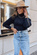 Damski sweter prążkowany z krótkim rękawem GIRLGLORY niebieski Dstreet MY2555