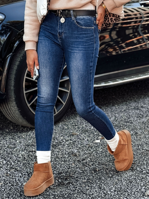 Spodnie damskie JEANLIFE jeansowe skinny z paskiem w zestawie niebieskie Dstreet UY2195