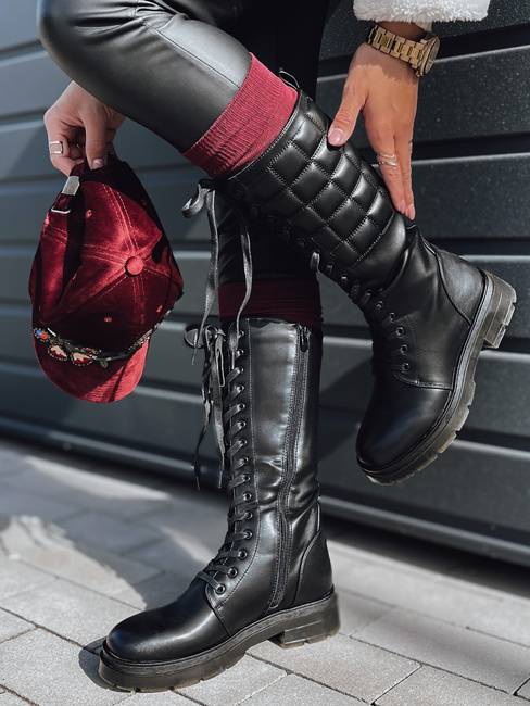 Kozaki damskie JINOVA pikowane czarne Dstreet ZY0504