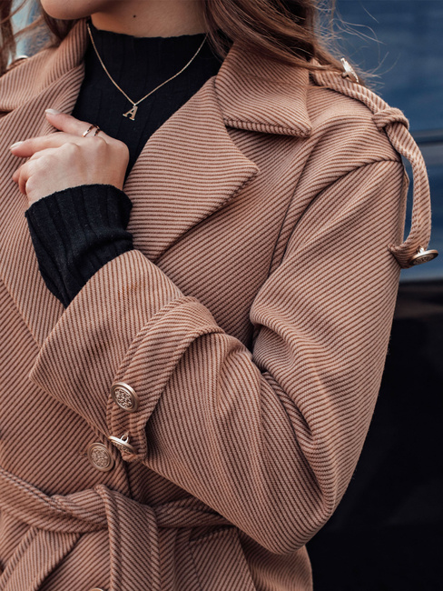 Elegancki płaszcz damski, który łączy klasykę z nowoczesnym stylem. Dzięki starannemu wykonaniu i przemyślanemu krojowi, ten model doskonale podkreśla sylwetkę, nadając jej smukłości i szyku. Detale w postaci ozdobnych guzików dodają mu wyjątkowego charakteru. To doskonały wybór na chłodniejsze dni, gdy chcesz połączyć komfort z ponadczasową elegancją.