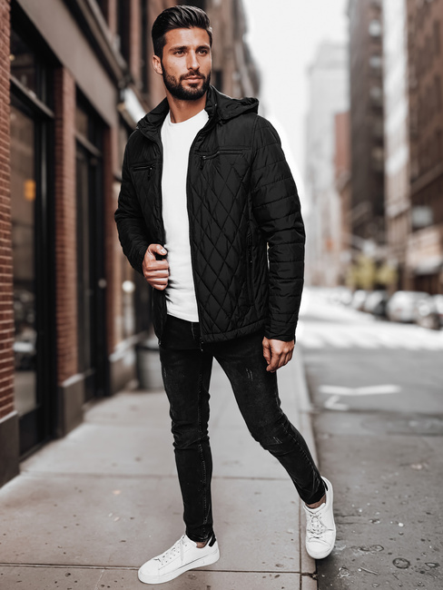 Kurtka męska pikowana z kapturem czarna Dstreet TX4989