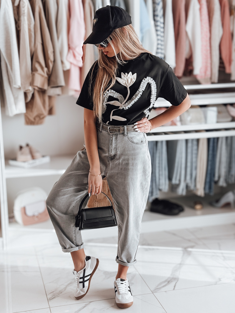 T-shirt damski oversize z efektem 3D PETINIA czarna Dstreet RY2716