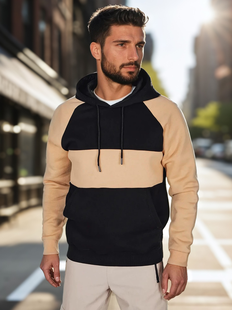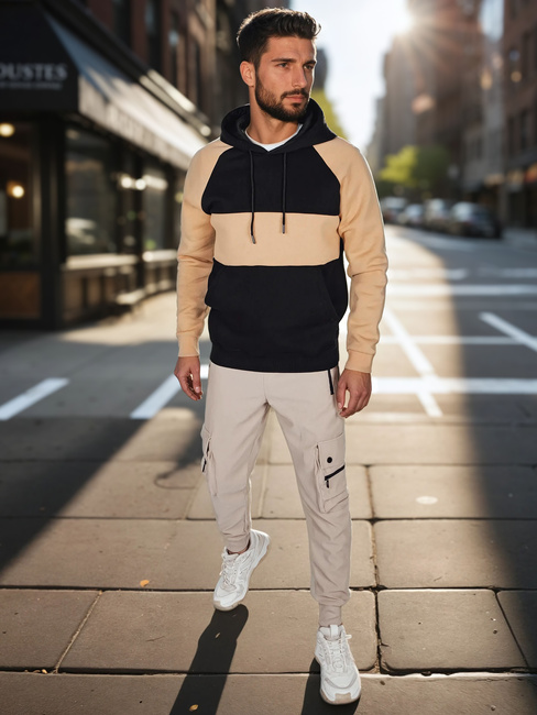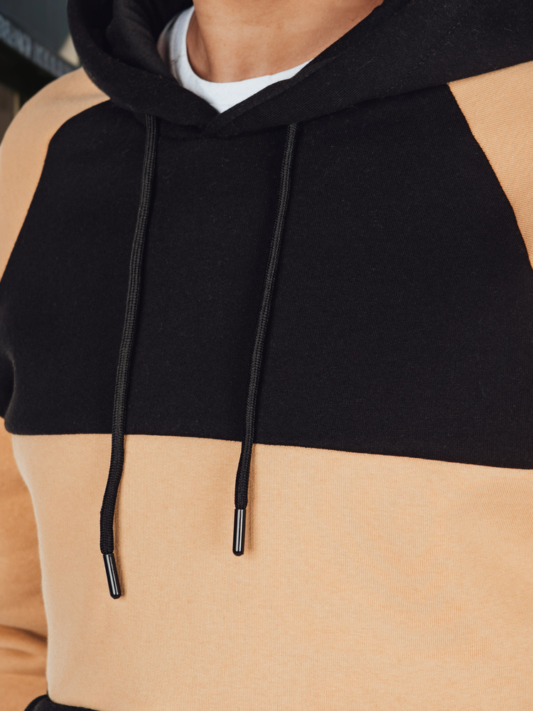 Bluza męska z kapturem w kamelowo-czarne paski Dstreet BX5897