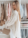 Koszula damska oversize z dłuższym tyłem SAMONE w beżowo-białe paski Dstreet DY0463