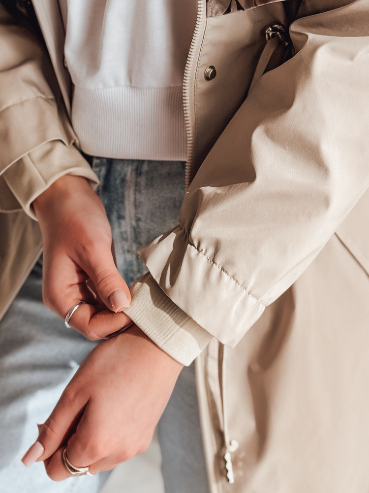 Modna parka przejściowa z wyrazistymi detalami, które nadają jej unikalny wygląd. Regulowany pas podkreśla talię, a nieodpinany kaptur dodaje praktyczności. Dzięki zapinaniu na suwak i napy zapewnia komfort noszenia. Doskonała do codziennych stylizacji w miejskim klimacie. Świetny wybór na okres wiosenny.