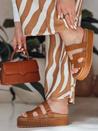 Klapki damskie na rzepy PLATFOR kamelowe Dstreet ZY0868