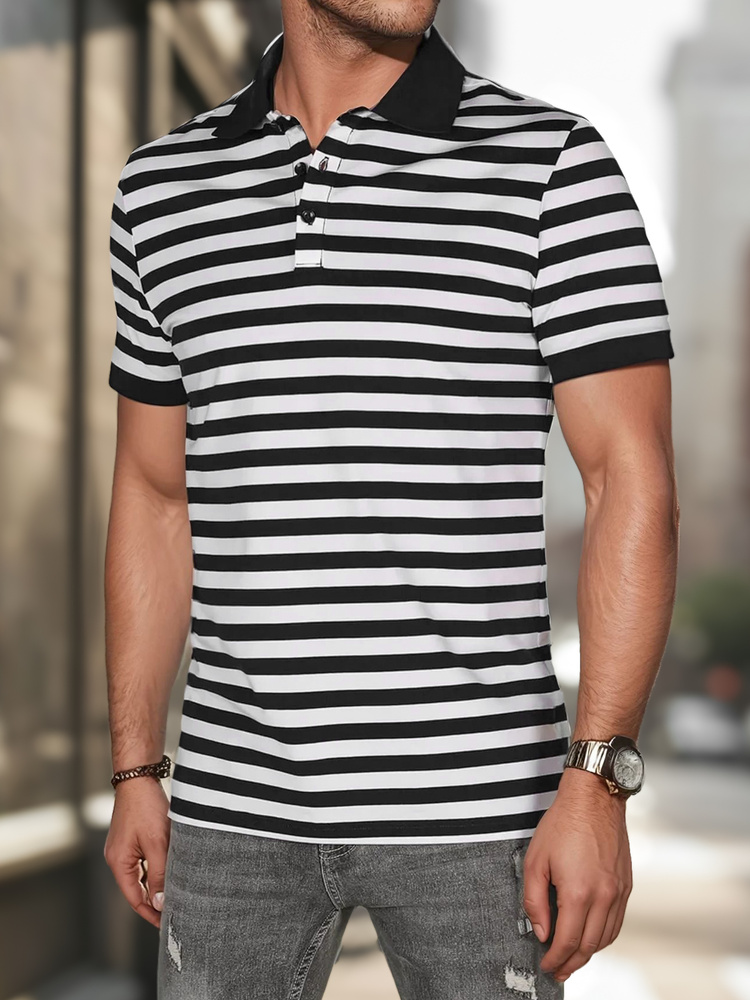 Koszulka męska polo w paski biała Dstreet PX0642