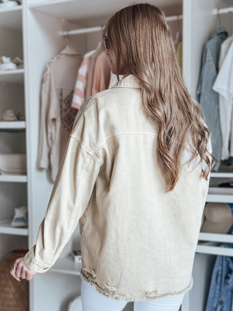 Kurtka damska jeansowa oversize JUSTDEM beżowa Dstreet TY4908