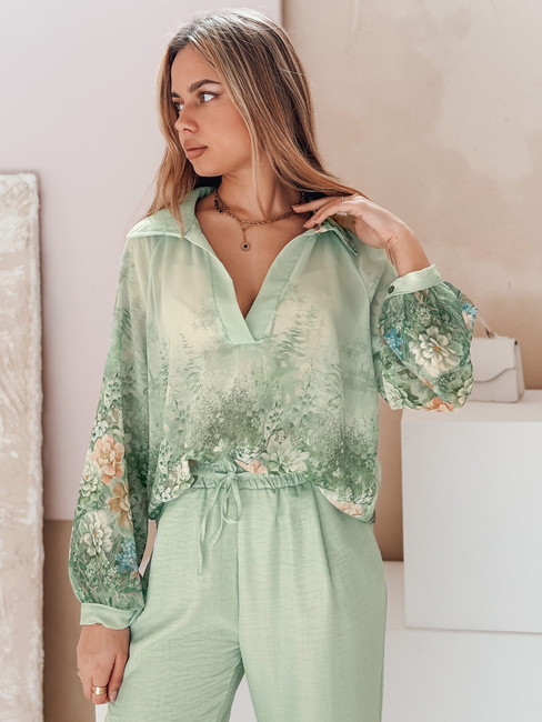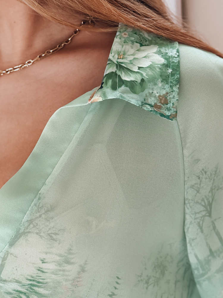 Koszula damska oversize w kwiaty KWIACYNTA zielona Dstreet DY0471