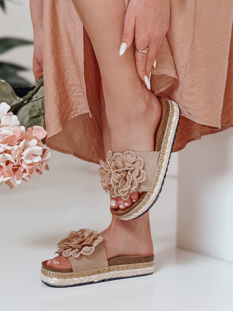 Klapki damskie z kwiatem KWIATARIS khaki Dstreet ZY0910