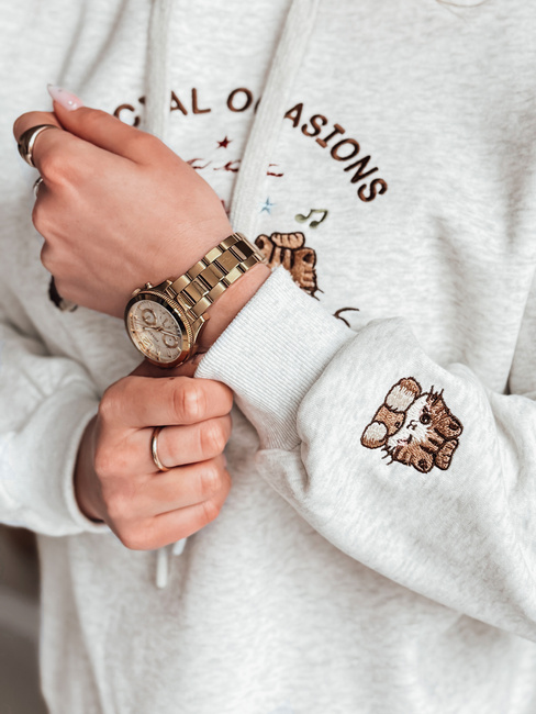 Bluza damska oversize z kapturem SPECIAL KITTY szara Dstreet BY1510