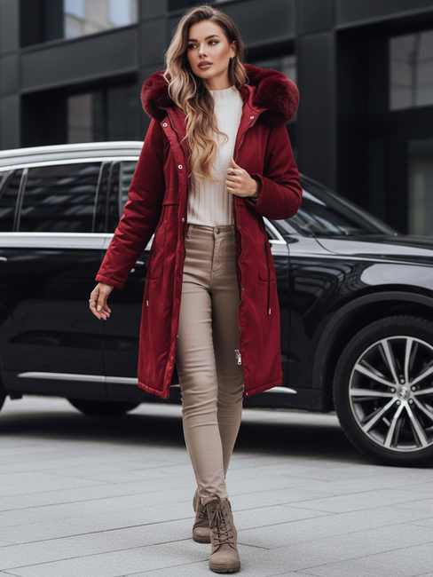 Kurtka zimowa damska parka z futerkiem bordowa Dstreet TY5114
