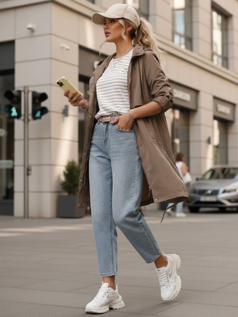 Damska kurtka przejściowa typu parka to praktyczny i stylowy wybór na sezon wiosenny oraz jesienny. Klasyczny fason w połączeniu z funkcjonalnymi detalami zapewnia wygodę noszenia oraz możliwość dopasowania kurtki do sylwetki. Model doskonale sprawdzi się w codziennych stylizacjach miejskich.