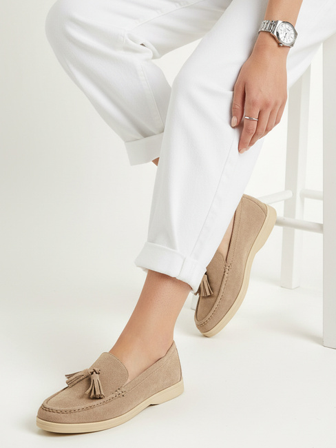 Mokasyny damskie zamszowe ZY1357 beżowe