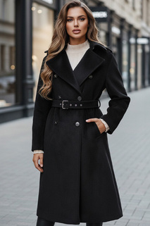 Trencz damski dwurzędowy z paskiem BELISION czarny Dstreet NY0749